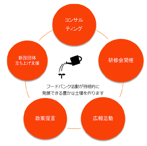 全国フードバンク推進協議会ではそのような問題を解決し、一人でも多くの方が救われることを目指し次のような取り組みを行っています。